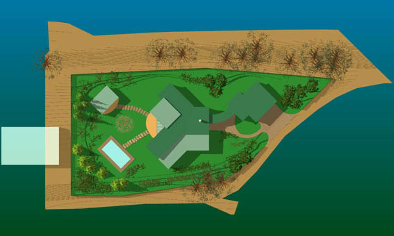 pozemku ovšem musíme vyřešit hlavní vazby a kompoziční principy terénních úprav,
